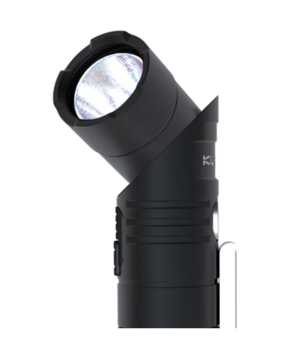 La lampe tactique rechargeable intègre une LED Cree XM-L2 U2 délivrant une puissance maximale de 1080 lumens. Sa conception se distingue par une tête orientable jusqu’à 90° et un culot aimanté permettant une fixation stable pour un usage mains-libres. Le châssis est usiné en alliage d’aluminium de qualité aéronautique avec une finition noire, assurant une résistance aux chutes jusqu’à 1 mètre. L’alimentation est assurée par une batterie Lithium-Ion 18650 rechargeable via un cordon USB non magnétique.