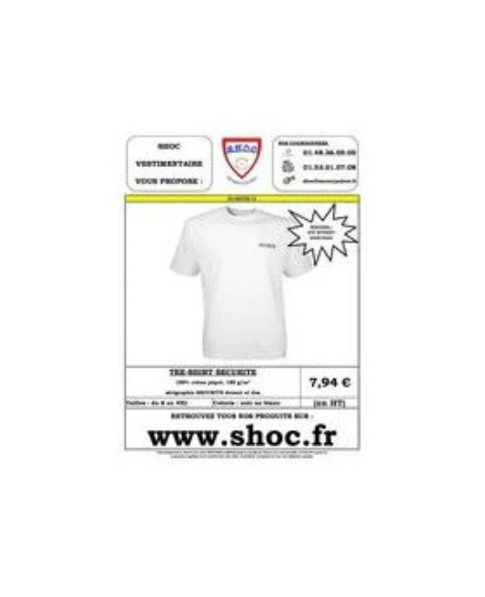Le tee-shirt de sécurité constitue un équipement de base pour les agents de surveillance et de protection. Conçu en 100% coton avec un grammage de 180 g/m², ce vêtement assure une régulation thermique naturelle et une résistance adaptée à un usage professionnel quotidien. Le marquage par sérigraphie portant la mention « sécurité » est apposé sur la face avant au niveau pectoral gauche ainsi que sur la partie dorsale pour une identification immédiate de l’opérateur.